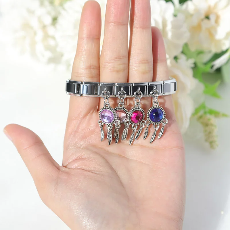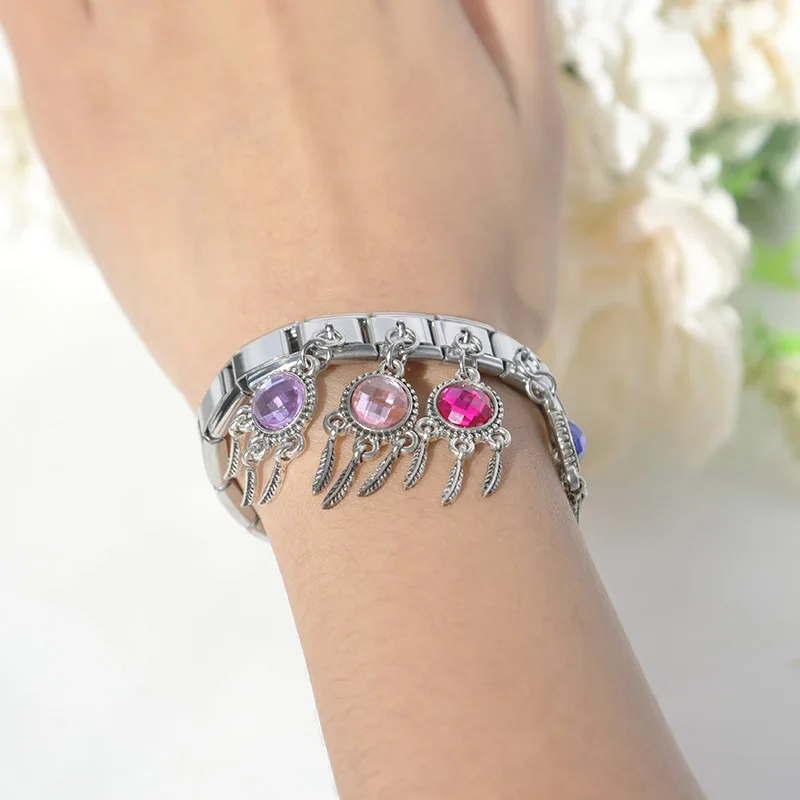 Ayez le style italien avec le bracelet à charms Italian Charm 9mm attrape rêves cristal rose vert bleu !
